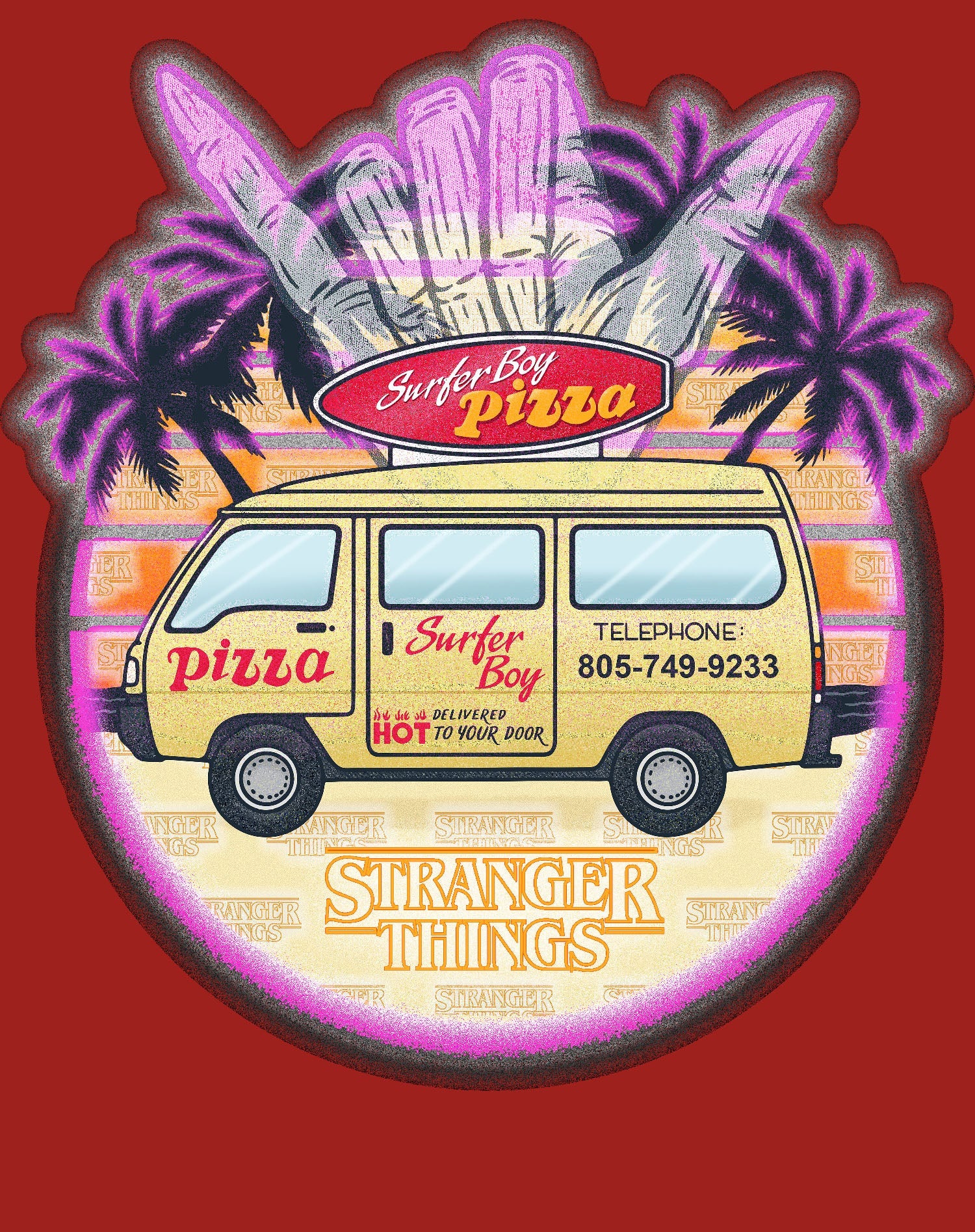Stranger Things Argyle Splash Surf Pizza Official Women's T-Shirt